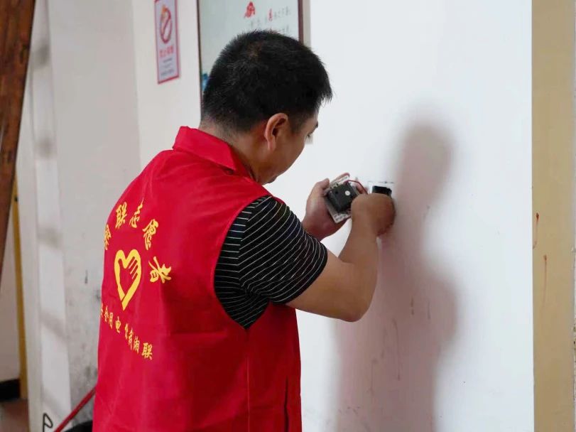 除了教育助力以外,今年湘聯(lián)電纜企業(yè)電力工程師也加入到“芯”光助學(xué)志愿隊伍中,對當(dāng)?shù)鼗A(chǔ)設(shè)施的老化電線、開光插座等進行排查修理,更換殘舊設(shè)備20余處,有效地消除了潛在的用電安全隱患。
